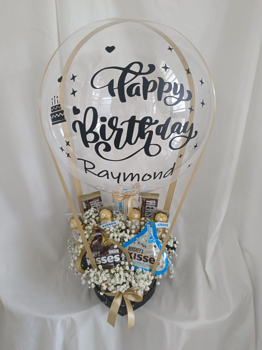 Elevate your gift-giving with our Mixed Chocolate Hot Air Balloon – a bestseller at Nieldelia Florist in Kajang! This one-of-a-kind arrangement combines a gorgeous floral touch with delicious chocolates, all set beneath an elegant hot air balloon for an extra magical presentation.